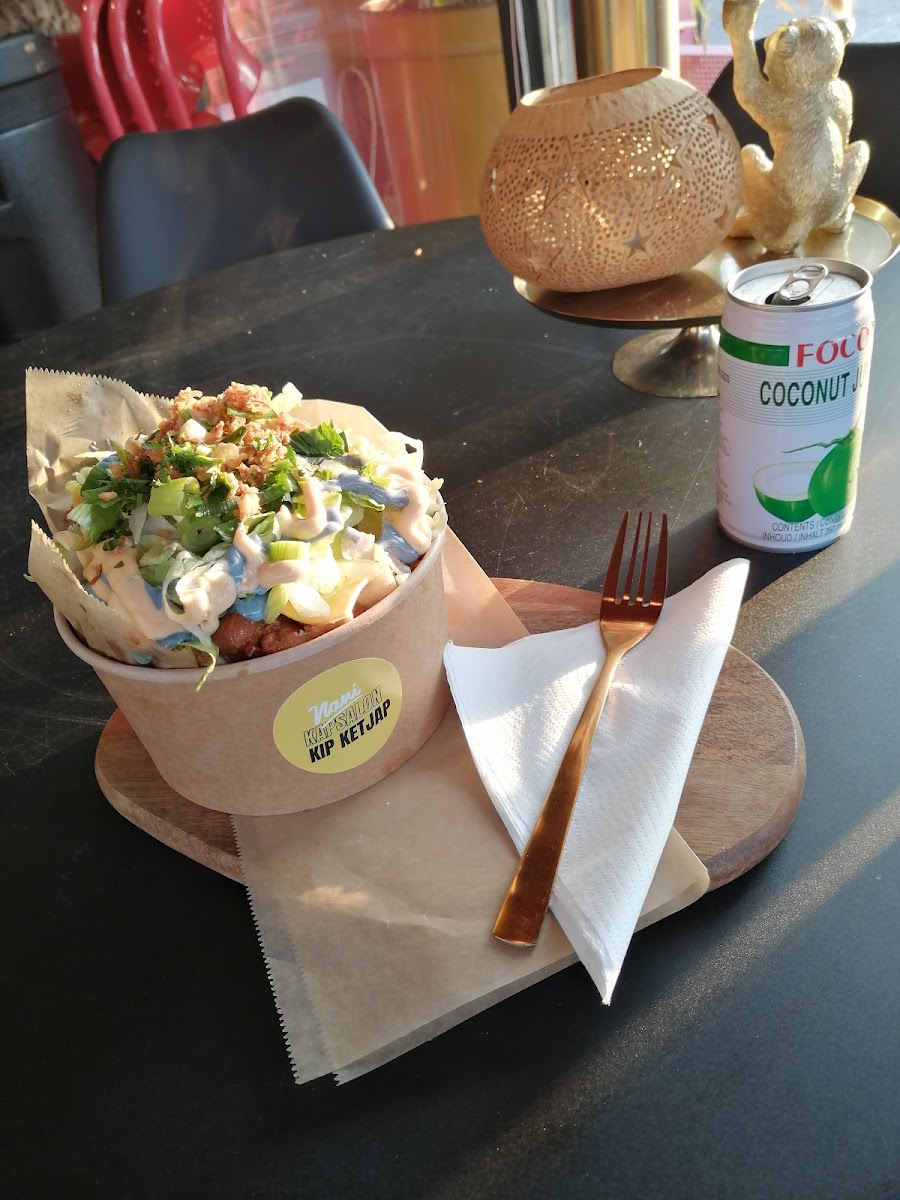 If you're in the mood for something crispy, the Bucket Crispy Hotwings is an excellent choice. These hotwings are golden, crunchy, and perfectly seasoned, making them a crowd favorite. For those who prefer a lighter, yet equally satisfying dish, the Hete Kip Bami Groente brings together spicy chicken with noodles and vegetables, offering a refreshing balance of heat and flavor. If you love spice, don't miss the Bami Met Pikante Kip, a dish that combines savory noodles with spicy chicken, making it a perfect option for heat seekers.